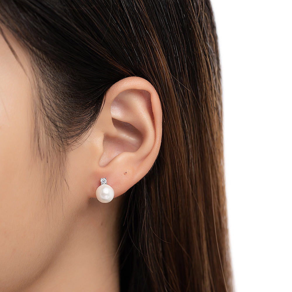 • Sterling Silver Pearl and Zirconia Stud Earrings