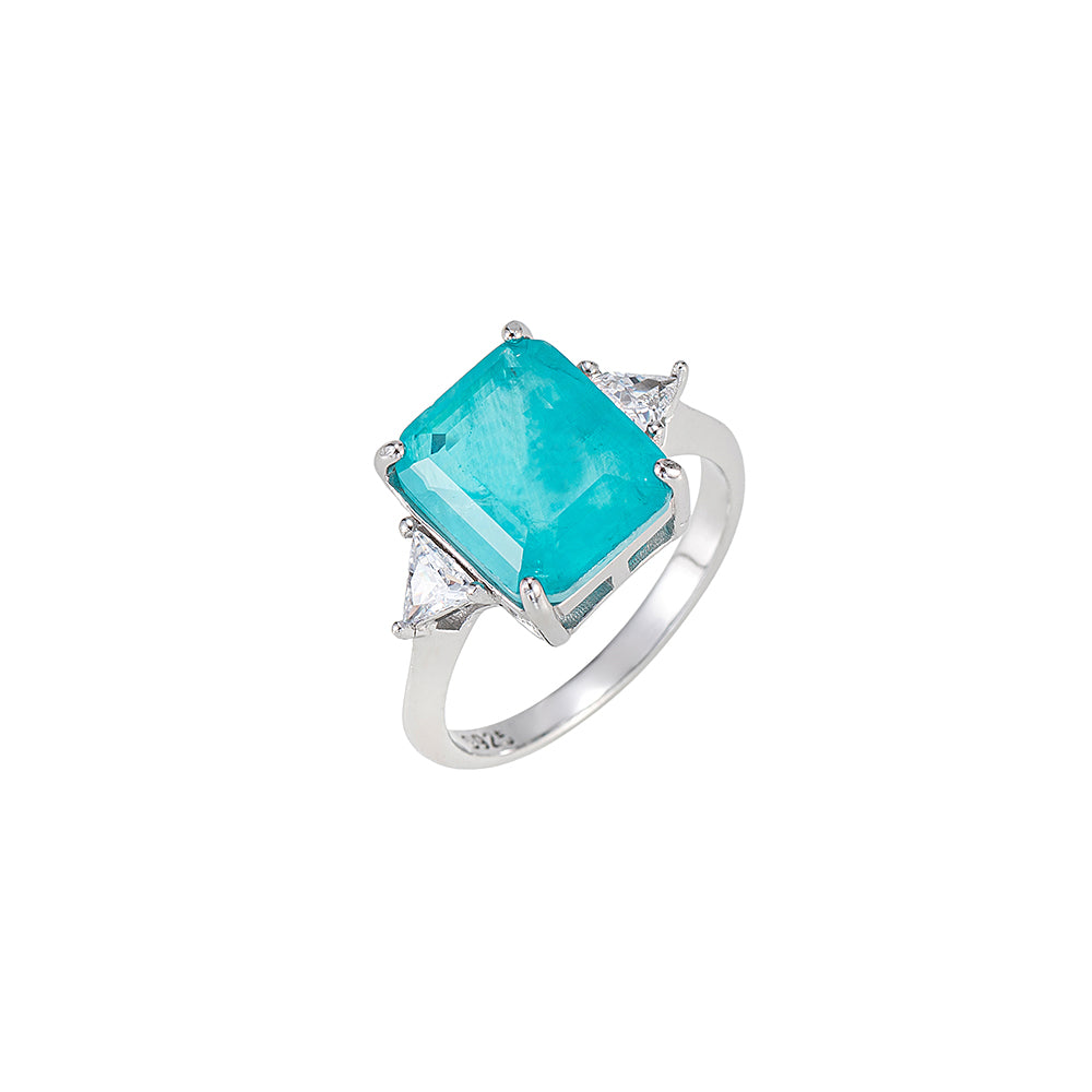 Emerald Cut Aqua Topaz Ring