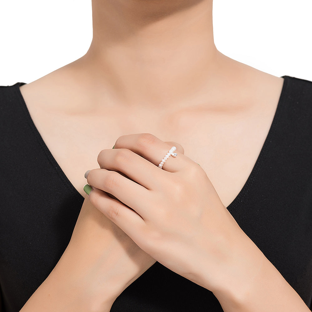 Dangly Silver Pearl Ring
