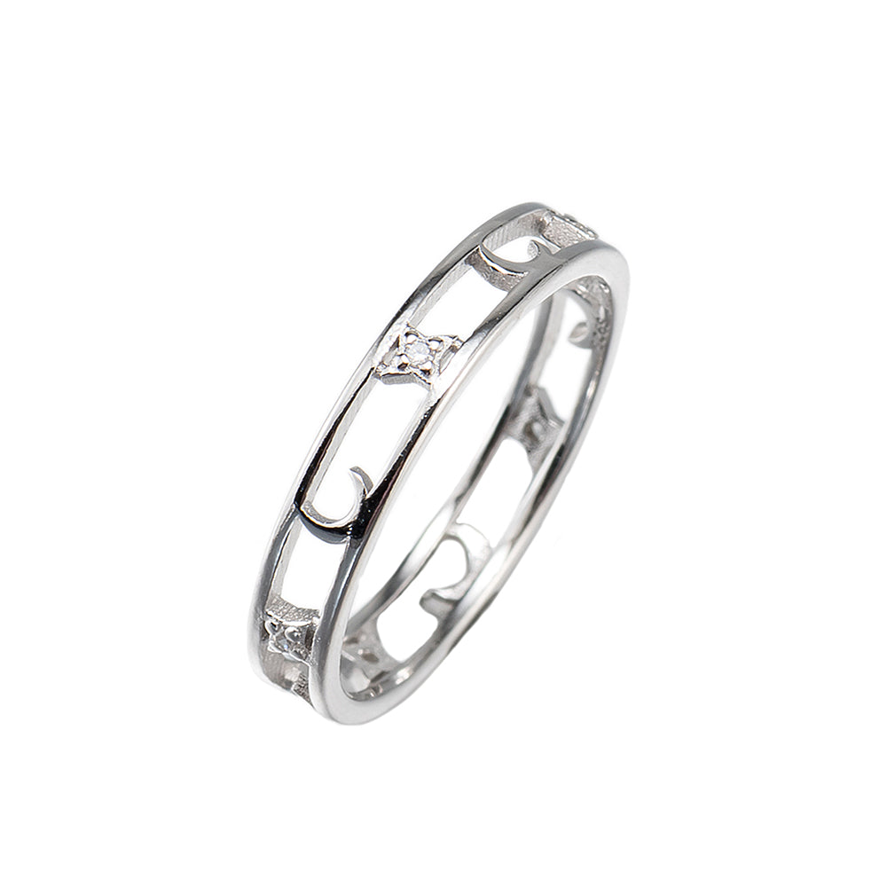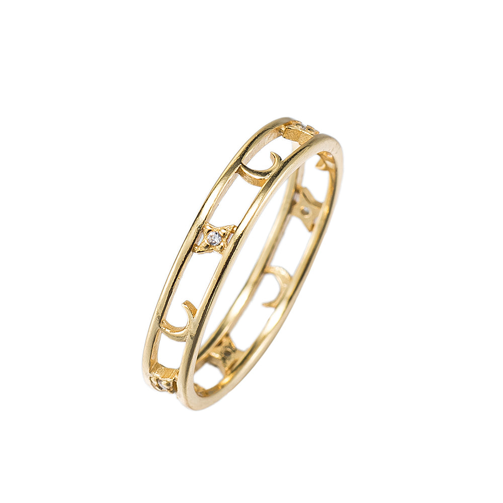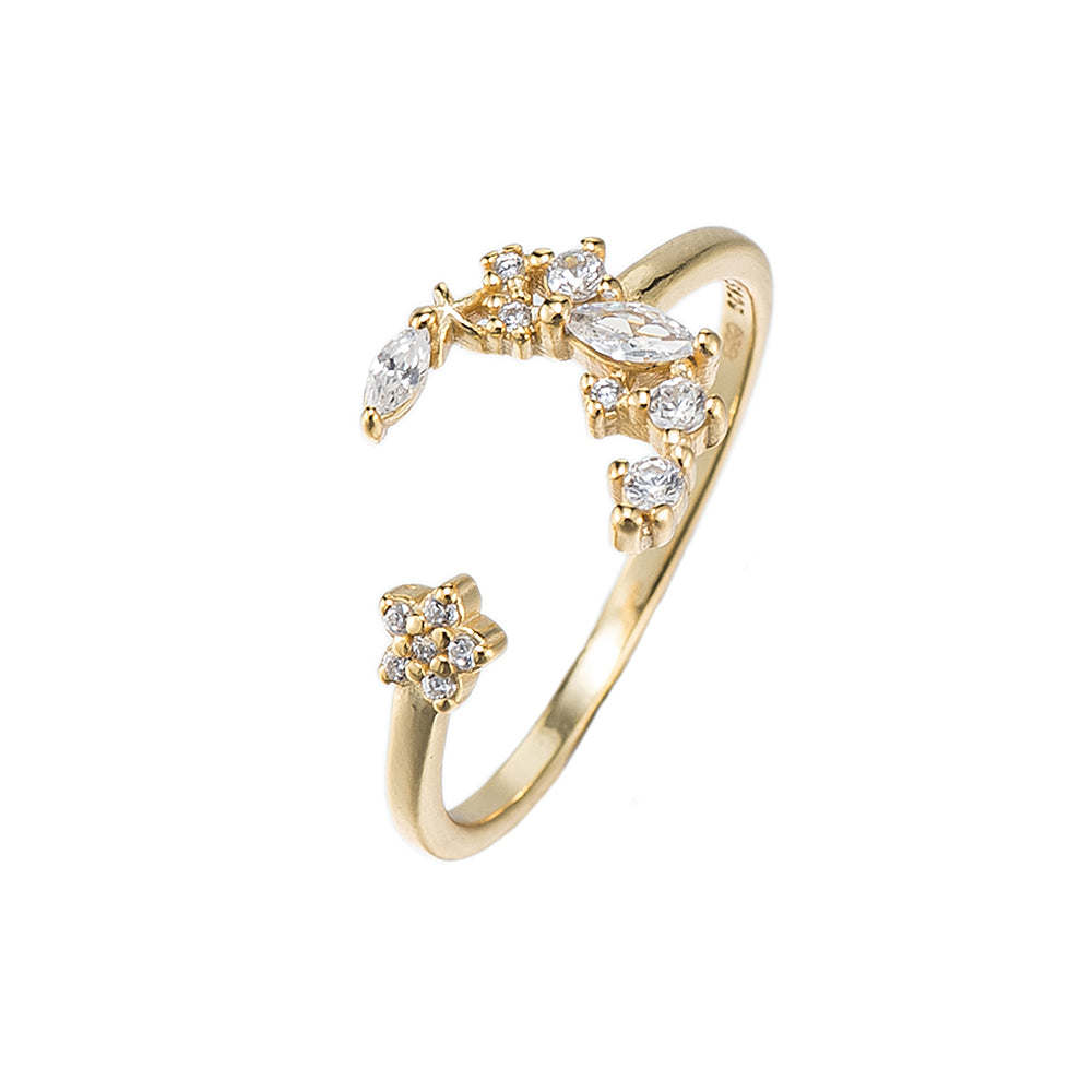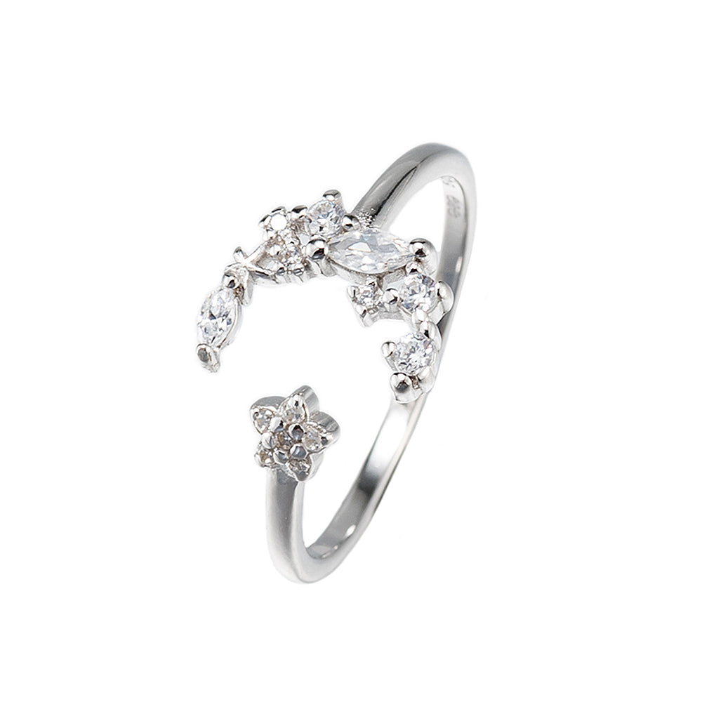 Adjustable CZ Crescent and Moon Ring