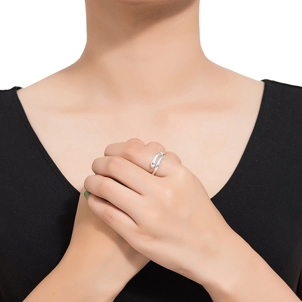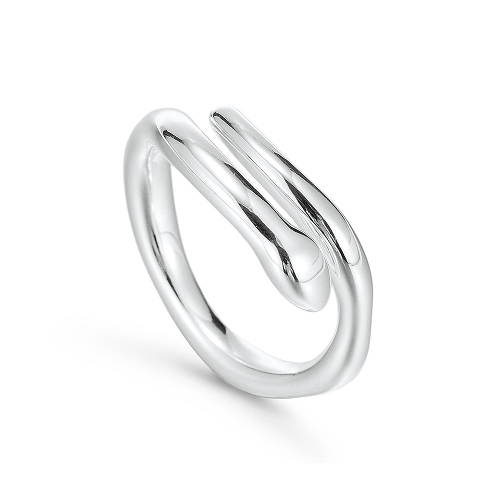 Silver Double Line Wavy Ring