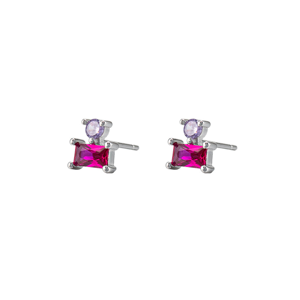 Sterling Silver CZ and Ruby Stud Earrings