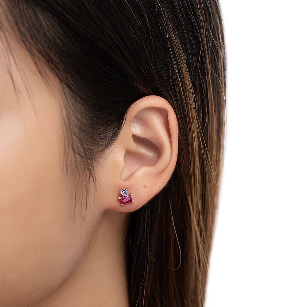 Sterling Silver CZ and Ruby Stud Earrings