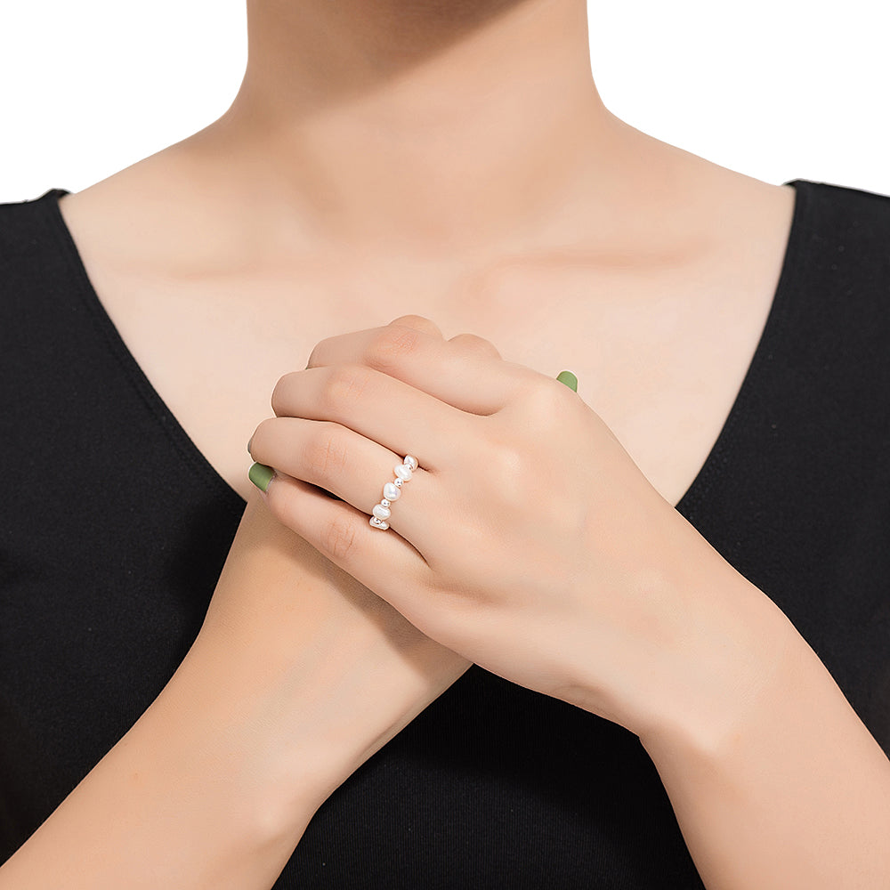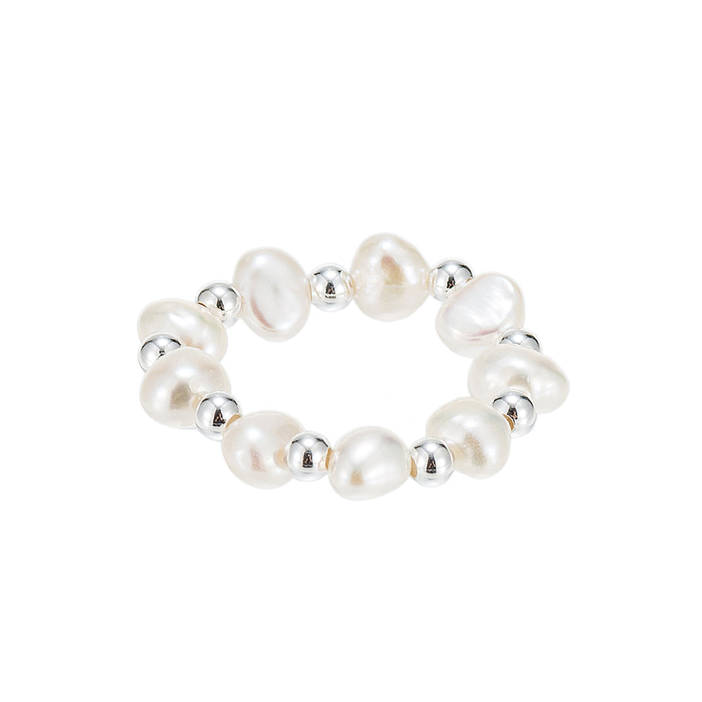 Adjustable Fresh Water Pearls And Silver Beads Ring