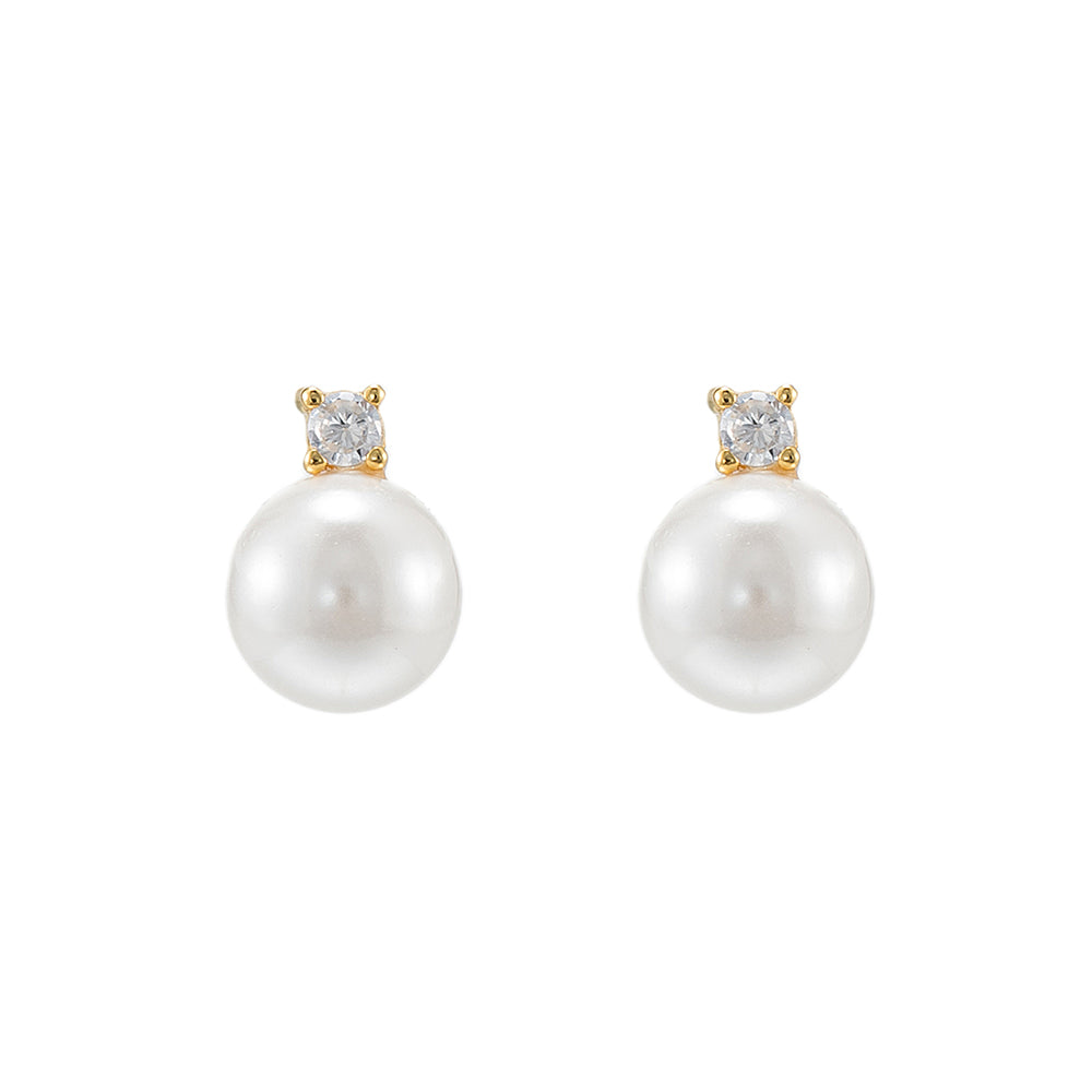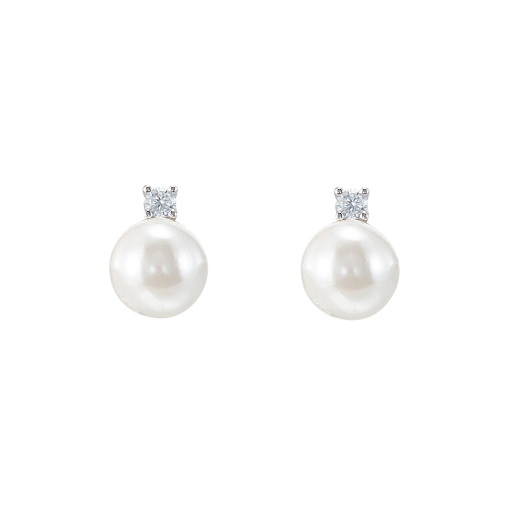 Sterling Silver Pearl and Zirconia Stud Earrings