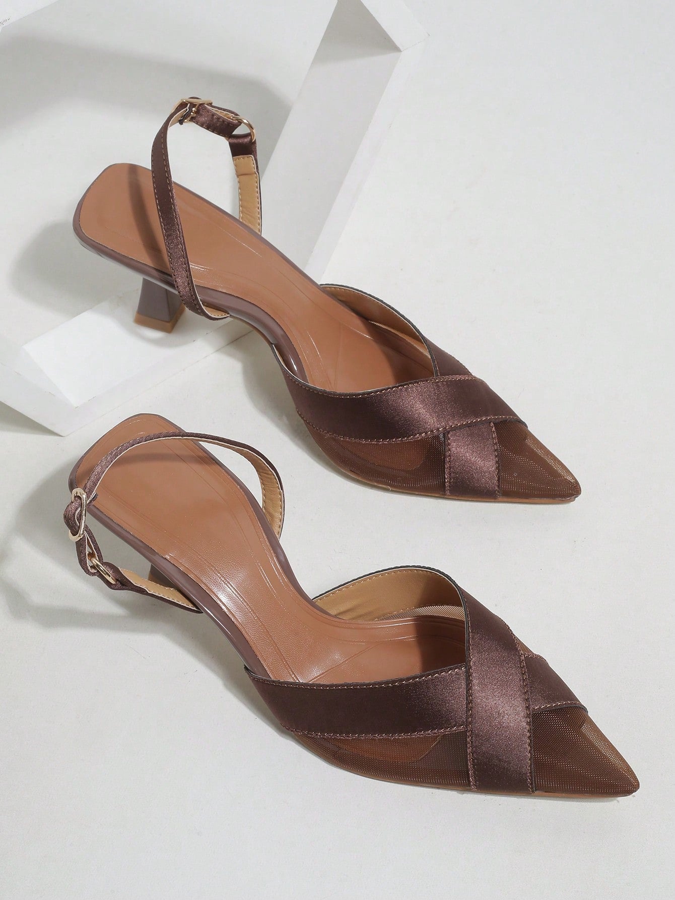 Women's Minimalist Mesh Detail Peep Toe Heeled Sandals