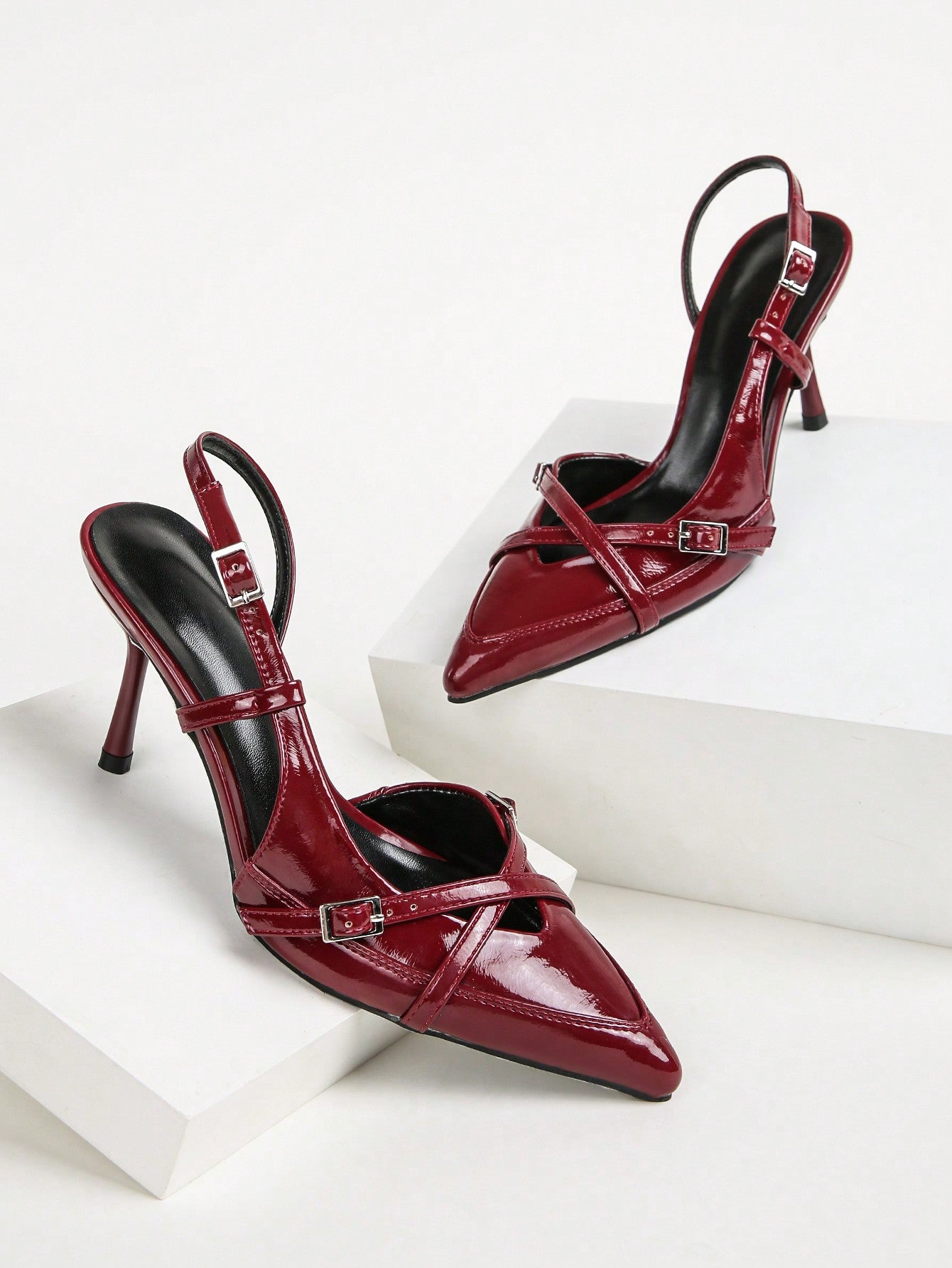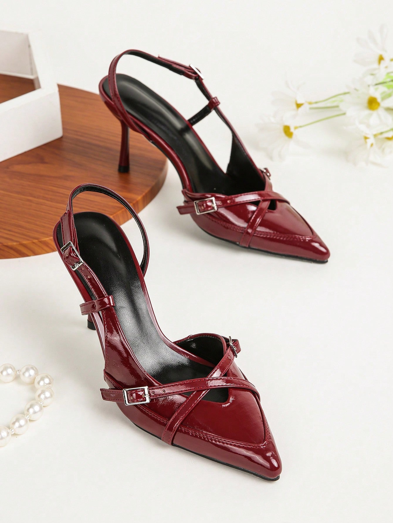 Women's Sexy Burgundy Crisscross Buckle Pointed Toe Stiletto High Heel Sandals