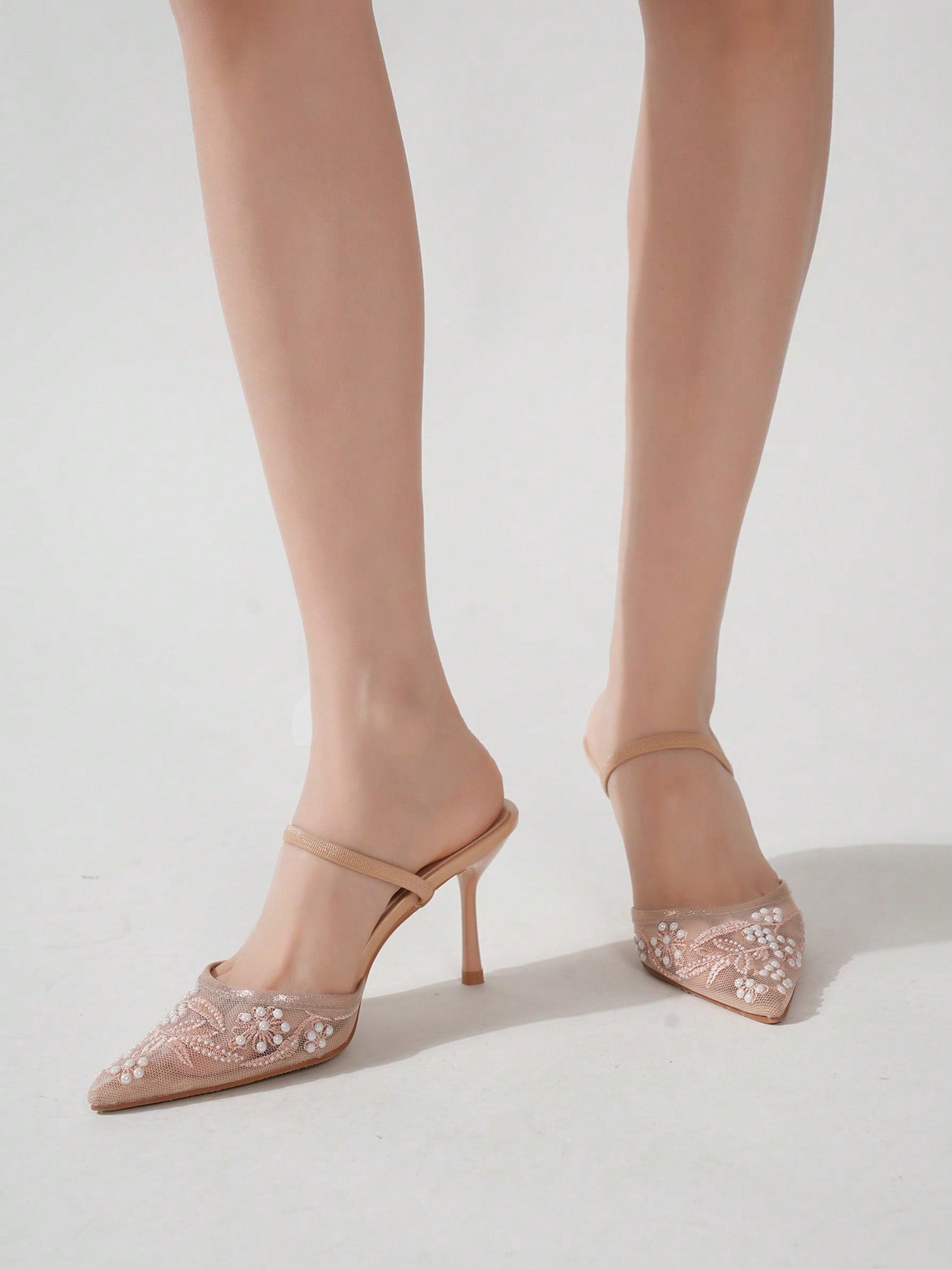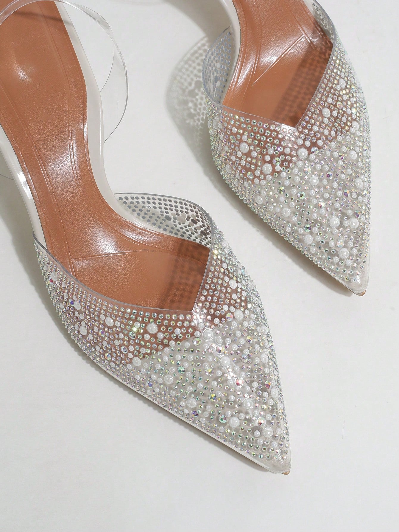 Women's Rhinestone Decorated Pointed Toe High Heels